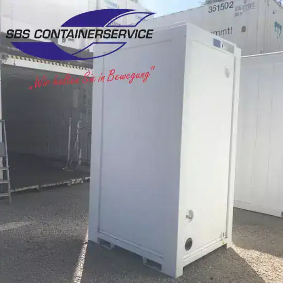 Optimal für Veranstaltungen und auf der Baustelle; Die saubere Lösung: 5′ WC-Container mit Spülsystem;