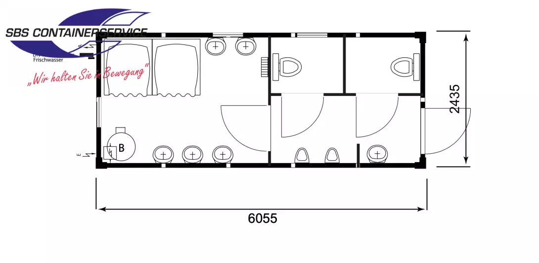 20ft. Sanitärcontainer S20P – 2 Duschen, 2 WC, top Zustand